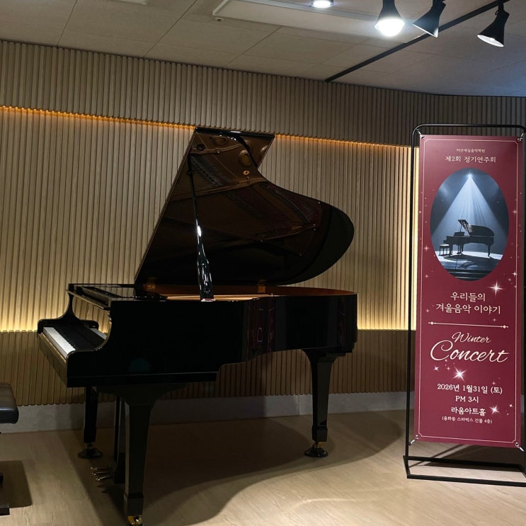"선생님, 저 못할 것 같아요..." 이번 Winter Music Concert를 준비하며 가장 많이 들었던 말입니다. 손을 꼭 쥔 채 불안한 눈빛으로 저를 바라보던 아이들의 모습이 눈에 선합니다. 하지만 무대의 막이 오르고, 조명이 켜지고, 그 작은 손가락들이 건반 위에서 노래하기 시작했을 때, 관객석의 부모님들의 눈에 하트가 백만개 피어났습니다^^ 20년 넘게 피아노를 가르치며 수많은 연주회를 진행했지만, 올해 겨울 콘서트는 유독 특별했습니다. 왜 그랬을까요? 지금부터, 우리 아이들이 무대를 통해 얻은 값진 배움을 나눠보려 합니다. 연주회는 왜 필요할까요? 많은 학부모님들이 물으십니다. "집에서도 잘 치는데 굳이 연주회를....... <img src="https://blogthumb.pstatic.net/MjAyNjAyMDZfMjM5/MDAxNzcwMzQ5NjQyMjY3.4p54M5FqbOjmWkKbGgThwWUFoxdOGsZI-N26voiiCQgg.FfQpHKadsGl40T5GXF6dzw-pGCBxwQuQxsSqFe40b-wg.JPEG/KakaoTalk_20260206_123857948_04.jpg?type=s3" />