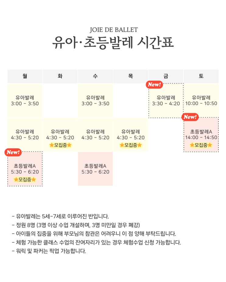 2026년 3월 새학기 유아발레 모집! 우리 아이 첫 발레, 조이드발레에서 시작하세요!