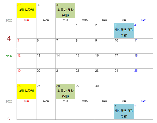 안녕하십니까. 데카르트수학국어학원입니다. 2026년 4월 수학수업 수강기간 안내 드리오니 확인하시고 원생 학습 시 참고하시기 바랍니다. [4월 학습 일정 공지] - 4월 등록기간 : 3/30(월) ~ 4/3(금) - 4월 수강기간 : 3/31(화) ~ 4/30(목) ○ 월수금반 개강일 : 4/3 (12회/월) ○ 화목반 개강일 : 3/31 (8회/월) - 4월 보강일 : 4/26(일) ※ 수강료는 선불이며, 교습 개시 이전에 납부 부탁드립니다. 감사합니다. #데카르트독서수학 #데카르트독서수학학원 #신불당수학학원 #신불당쎈수학러닝센터 <img src="https://blogthumb.pstatic.net/MjAyNjAzMjJfMzgg/MDAxNzc0MTUzMTgzNTgy.wDLkvZG0WAGvciJe2y-5hxcjmAeo12_e8zRtmoev9y8g.TcEUvpOLJc9h4B_2U6URM13_As4MIL72EOoSgKFB_lQg.PNG/image.png?type=s3" />