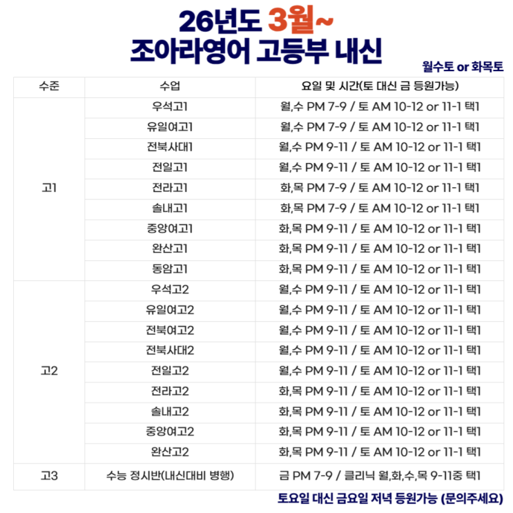 2026 조아라영어 시간표