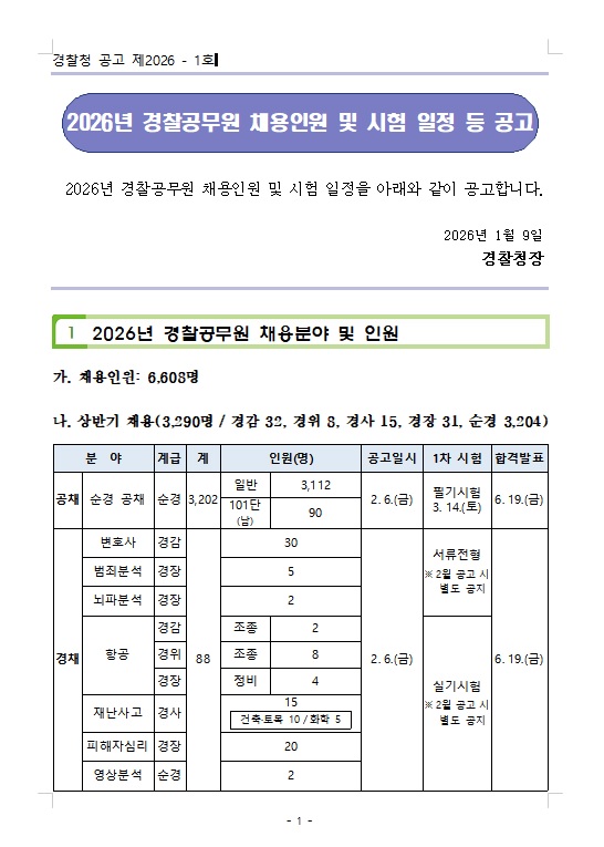 2026 경찰공무원 채용시험 일정