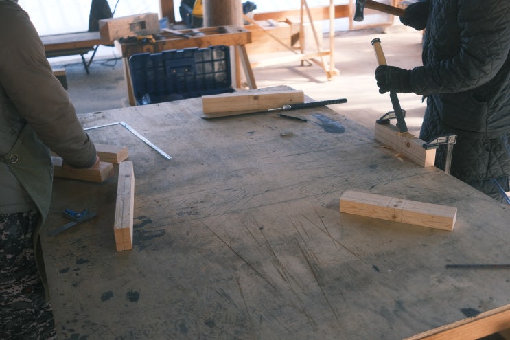 이론 수업이 끝나고 삼분턱 실습을 진행 중이다. 이번에는 조별로 익공 부재를 만들어 보는 시간이다. 각자 할당된 부재를 치수에 맞게 자르는 모습. 이제는 전동공구까지 사용하여 부재를 치목하는 모습. 다음으로 진행되는 실습은 졸업작품에 쓰일 서까래 치목입니다. 서까래의 나이를 매기고 나서 소매걷이를 해줍니다. 소매걷이를 해야 서까래가 아름다움이 더욱 살아나게 됩니다. 마무리는 손대패로 해야 전통한옥을 짓는 거라고 할 수 있죠. 이날은 졸업작품으로 만들 한옥의 부재들이 들어오는 날입니다. 다 같이 옮겨서 생각보다 일찍 끝이 났습니다. 서까래가 끝나고 다음 부재는 기둥입니다. 학생분들 각자 기둥을 1개씩 맡아서 치목을....... <img src="https://blogthumb.pstatic.net/MjAyNjAzMTZfMTIy/MDAxNzczNjI1NjQ4MjM1.jEyQwS2UN2CEOhH7glivTsaWYWTO7QZAiv5oINejyUAg.l0l2yqYx9tS9X741g_wMVYkTdEItNUDag7UxLMi20dUg.JPEG/%B4%EB%B8%F1_136%B1%E2_%BD%C7%BD%C0_%2820%29.JPG?type=s3" />