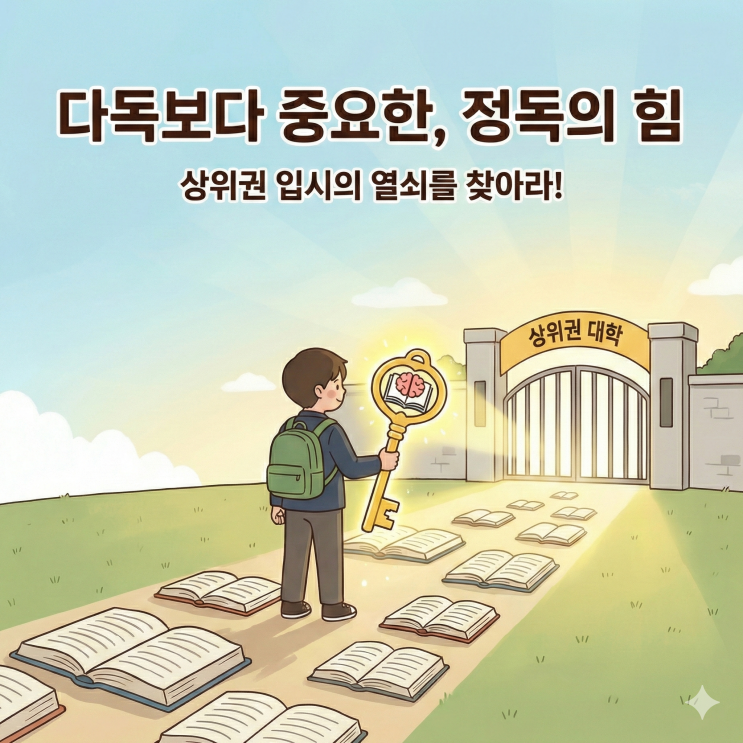 안녕하세요! 수학만영어도학원입니다. 아이들의 독서 습관, **"몇 권 읽었니?"**에만 집중하고 계시진 않나요? 오늘은 단순히 책을 많이 읽는 '다독'보다 훨씬 더 중요한, 입시 경쟁력을 결정짓는 **<정독의 힘>**에 대해 이야기해 보려 합니다. ✨ 1️⃣ 빨리 읽기? 뇌는 기억하지 못합니다 '속독'이 능사는 아닙니다. 빨리 읽으면 시간은 단축되지만, 우리 뇌는 정보를 깊이 있게 처리할 시간을 뺏기게 됩니다. ✅ 연구 결과에 따르면 속도는 빨라지지만, 내용을 추론하거나 나중에 기억해 내는 능력은 현저히 떨어진다고 해요. 눈동자가 단어에 머무를 때 정보가 입력되고, 뇌가 이를 ....... <img src="https://blogthumb.pstatic.net/MjAyNjAxMjlfMjYg/MDAxNzY5NjYxODkwODU2.-Qq4H-BdUOBICfu-Ce29PibNm57Wft5_iPIySVE_71cg.rTF98qeEhYXQVCeShiHdENgGwHQnp1oRyUW-6NbzyKEg.PNG/Gemini_Generated_Image_o4v2bqo4v2bqo4v2.png?type=s3" />