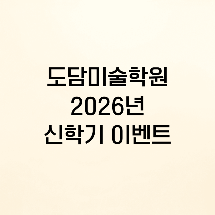 도담미술학원 2월 신학기 이벤트 안내|5개월 등록 시 1개월 무료 도담미술학원 2월 수강 혜택 안내|신학기 감사 이벤트 & 상시 할인 안녕하세요. 도담미술학원입니다. 항상 믿고 보내주시는 학부모님께 진심으로 감사드립니다. 신학기를 맞아 학부모님들께 조금이나마 도움을 드리고자 2월 한정 이벤트와 상시 할인 혜택을 함께 안내드립니다. ① 신학기 감사 이벤트 (2월 한정) 5개월 선결제 시 1개월 무료 총 6개월 수업을 이용하실 수 있는 신학기 감사 이벤트입니다. 많은 학부모님들께서 신학기마다 기다려 주시는 혜택으로, 장기적으로 수업을 계획 중이신 분들께 특히 도움이 되는 구성입니다. ■ 이벤트 기간 2월 28일까지 ■ 적용....... <img src="https://blogthumb.pstatic.net/MjAyNjAxMjlfMyAg/MDAxNzY5NjczMDE1Njcx.dKpzA2Mbr4yZc7OkGnTXRiZuWV1w1d_HIpQIuR9fu3wg.sNeLMsPAD8Fxdb23cTyo2U108SnUapWNxyXUUXS-FE0g.PNG/%C1%A6%B8%F1%C0%BB_%C0%D4%B7%C2%C7%D8%C1%D6%BC%BC%BF%E4._%2813%29.png?type=s3" />