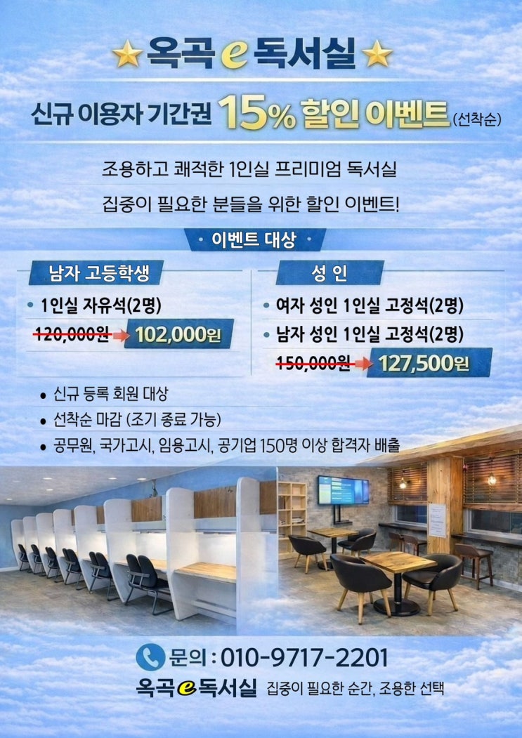 신규 등록자 15% 할인 이벤트(선착순 2명)