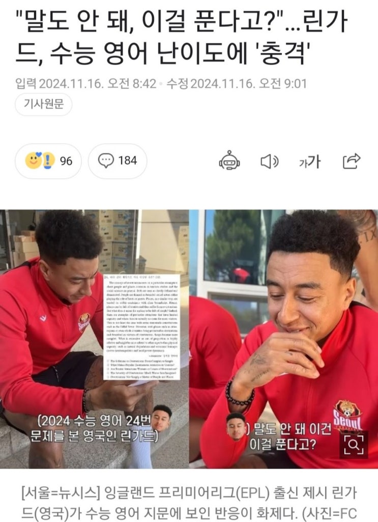 안녕하세요. 요즘 독감이 유행이던데 건강관리 잘 하시길 바래요.^^ 오늘은 초등영어 공부하다 중등과정에서 올바르게 공부해야 되는 방법에 대해 말씀드리고자 합니다. 최근에 예비중1 학생들 레벨테스트를 해보면 초등때 4~5년, 심지어 유치부때 영어학원 다녔지만 I saw him cross the street 지각동사 이 간단한 문장조차 영작이 안되는 학생들이 너무 많습니다.ㅠㅠ 심지어 3인칭단수에 s를 붙이는것 조차도 헷갈려하고 일반동사, be동사, 조동사 의문문, 부정문 조차 제대로 만들지 못하는 학생들이 있습니다. 위에 보시다시피 원어민들조차도 수능영어는 풀지못하고 대학가기위해 가장중요한 고등영어내신과도 거의 관련성이 없으므로 원....... <img src="https://blogthumb.pstatic.net/MjAyNTEyMTlfMjg2/MDAxNzY2MTQxOTQwMjcx.KzDeP7ain6TNtE4YdtywzKIg01BU-ANcDDnjtRLXNakg.XqMja4NKzf8DY6fx9nBjqTTTbHtCee1PzBeOSxKGIFsg.JPEG/900%A3%DFScreenshot%A3%DF20241117%A3%DF185018%A3%DFNAVER.jpg?type=s3" />