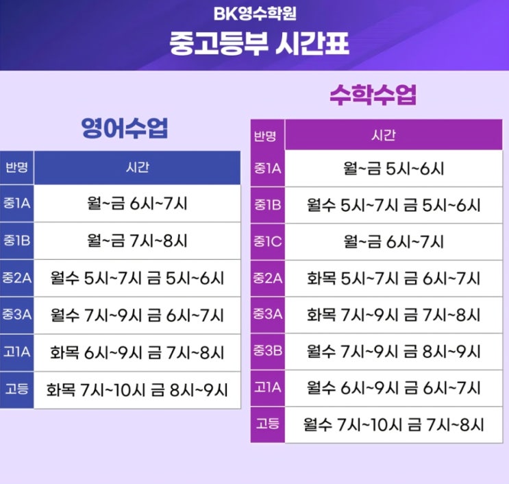 [BK영수학원]3월 수강시간표&회비안내