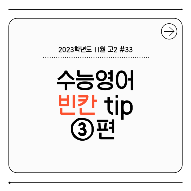안녕하세요, 목동 소수정예 학원 에듀메이트입니다. 지난 1편과 2편 포스팅을 통해 김송은 선생님의 빈칸 해결 전략을 소개해 드렸는데요! 오늘은 그 세 번째 시간으로, 2023학년도 11월 고2 모의고사 33번 문항을 통해 고난도 논리 구조를 정복하는 법을 알아보겠습니다 1편 다시보기: https://blog.naver.com/edumate_mokdong/224082676002 2편 다시보기: https://blog.naver.com/edumate_mokdong/224144081473 이번에도 여러분이 문제를 먼저 풀어본 후에 송은쌤의 팁을 알아볼까요? 정답 고르셨나요? 그럼 바로 공개하겠습니다! 상관관계와 인과관계를 구분하라! 이번 33번 문제의 핵심은 단순히 텍스트를 읽는 능력이 아니라, 지문....... <img src="https://blogthumb.pstatic.net/MjAyNjAxMjBfMTgy/MDAxNzY4OTA4NTQwMDE3.0n2pFGzjHoipO9IkGwBfmYYjwBo6g7rrdQ8YSSSGetQg.sTNuGRv9FXawqboiLrmqmjsI7kayD9ixDVeilN-uJJwg.PNG/%BA%F3%C4%AD_3%C6%ED-1.png?type=s3" />