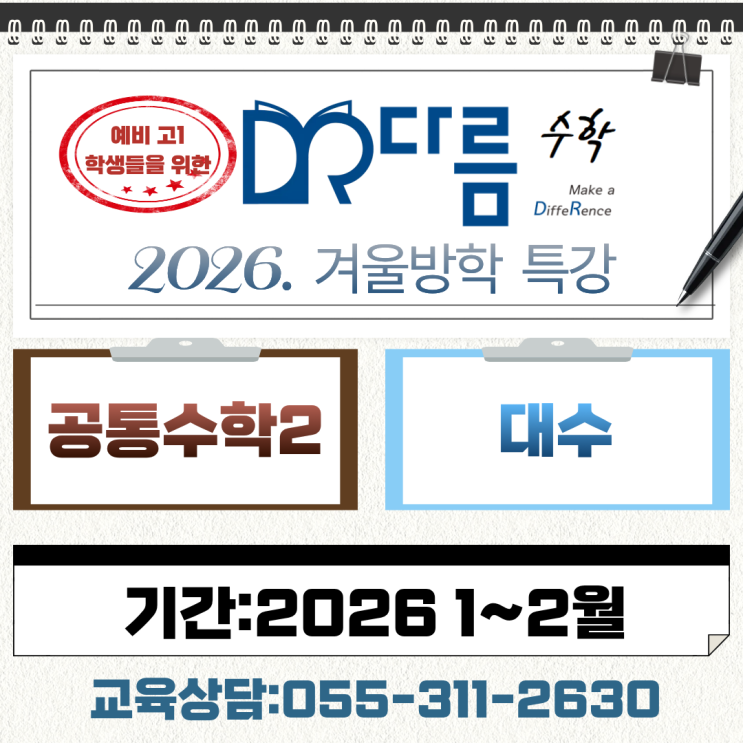 [다름수학] 예비고1을 위한 - 2026. 겨울방학특강