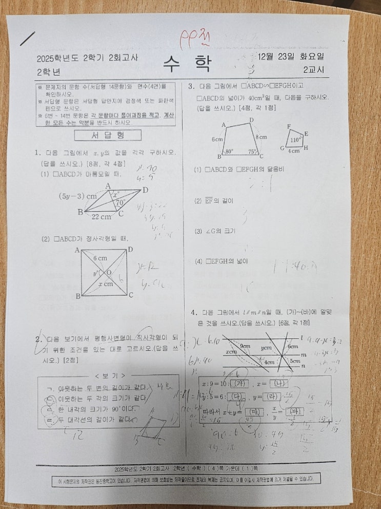 올해 8월초에 강남수학에 왔을땐 60점대에서 70점사이였는데 2학기중간에 80점대 나왔다가 이번 기말에 다맞았는데 감점이 조금 있어 99점정도 나왔네요. 성적을 올리고 싶은데 잘 안되는 자녀있으면 강남수학에 오시면 책임지고 올려드립니다. <img src="https://blogthumb.pstatic.net/MjAyNTEyMjRfMjg5/MDAxNzY2NTYyNTkwODc2.zLn2vBj0HEzknDP2fJh-6FC-y3yaVEkw5BI-p_0gE-Eg.oPzedrr-XzXfiPl0eiAhQfH5RDDYygqDI1qTSDFo7A4g.JPEG/900%A3%DF20251224%A3%DF163519.jpg?type=s3" />