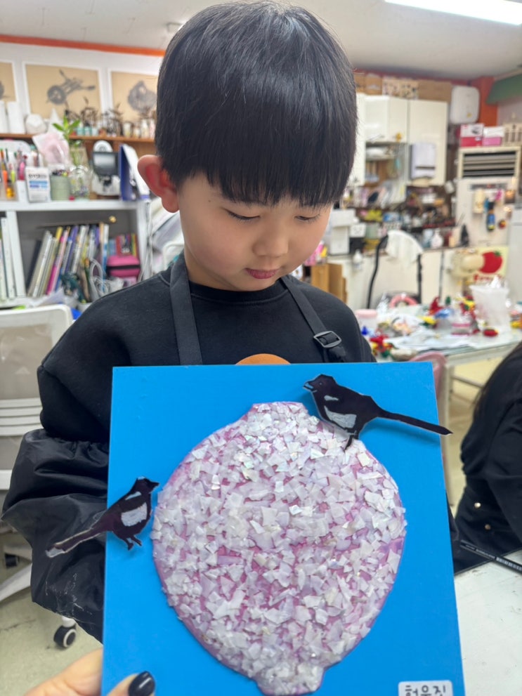 오늘은 정말 눈코 뜰 새 없이 바쁜 하루였어요. 아이들이 하나둘 들어오자마자 작업대는 금세 가득 찼고, 재료를 나누고, 설명하고, 붙이고, 묶고, 다시 알려주고… 정신없이 움직이다 보니 아이들 얼굴도, 작품도 다 담지 못한 하루가 되어버렸네요. 그런데요, 사진은 많이 없었지만 오늘은 유난히 마음에 오래 남는 하루였습니다. 달항아리 위에 까치를 올리고, 반짝이는 조각들을 한 장 한 장 붙이며 각자의 속도로 설 명절 마중을 완성해 가는 아이들. 누군가는 조용히 집중했고, 누군가는 옆 친구를 도와주었고, 누군가는 작은 양말목 복 장식을 손끝으로 매만지며 “선생님, 거의 다 했어요.” 하고 수줍게 말해주었지요. 바쁜 와중에도 가....... <img src="https://blogthumb.pstatic.net/MjAyNjAyMTJfMTU1/MDAxNzcwOTA3MDY1MDI0.ddSGSPVr00qFeKbmSYMp7j6mA9klv2WydmLtpe0a87Yg.1NqXOcEdj18zZFOQJhVVre2EOL_ri10Lwe5Ozu0t6wEg.JPEG/IMG%A3%DF0946.JPG?type=s3" />