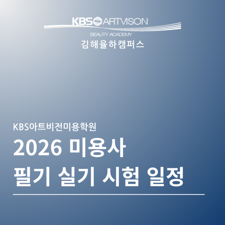 안녕하세요! 드디어 기다리던 2026년 미용사 필기 및 실기 시험 일정이 발표되었어요! 합격의 기회를 놓치지 않도록, 저희 KBS아트비전 김해율하점에서 꼼꼼하게 정리해 드리는 시험 일정을 지금 바로 확인해보세요! 미리미리 계획 세우고 착실히 준비해서 꼭 합격의 영광을 누리시길 바랄게요! ✨ 2026 자격증반 (국비 포함) 선착순 모집 중입니다 언제나 학원은 상담 가능하니 편하게 연락주세요 ! TEL 055.311.3757 ↓↓↓인스타그램 바로가기↓↓↓ 제3668호 KBS아트비전미용학원김해율하캠퍼스 사업자등록번호 833-95-01481 헤어국가자격증 3개월과정 월 500.000원 메이크업국가자격증 3개월과정 월 500.000원 네일국가....... <img src="https://blogthumb.pstatic.net/MjAyNTEyMjZfNTgg/MDAxNzY2NzQ2MDkwMjY5._WGY41EezJGrLe6x5Qs5cm06dKuPU8UJdb5aKoc0x4Mg.MGyTpIvueOaHy9bdB4l4Vn7HOvijFnwpopB1Gcno2aUg.PNG/KBS%BE%C6%C6%AE%BA%F1%C0%FC_%28900_x_900_px%29_%2811%29.png?type=s3" />