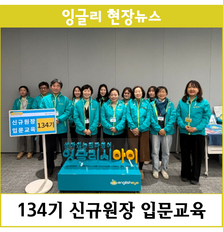 안녕하세요. 잉글리시아이입니다:) 2026년 1월도 어느덧 반이 지나가고 있는데요. 모두 새해 계획을 잘 지키고 계시나요? 2026년은 목표하신 일을 꼭 이루는 한 해를 보내시길 바랍니다. 잉글리시아이 134기 원장님들께서는 잉글리시아이와 함께 더욱 희망찬 새해를 시작하셨는데요. 새해를 맞이하여 더 열정이 넘쳤던 잉글리시아이 134기 신규원장 입문교육 후기를 전해드리겠습니다. 지난 1월 15일 비상교육 신사옥 ground V에서 잉글리시아이 134기 신규원장 입문교육이 진행되었습니다. 다가오는 신학기 잉글리시아이와 함께 새로운 출발을 준비하고 계신 134기 원장님들께서는 설레는 발걸음으로 한 분 한 분 도착해 주셨습니다. 원장님들께....... <img src="https://blogthumb.pstatic.net/MjAyNjAxMjBfMjg5/MDAxNzY4ODkzOTMzODIz.KCNFkhaHUWmWVnYOwGnATbVL9gNxppfdHu7XdJPwXH8g.5MFu-UaLSx2Jt0UTM1K3-m1aaQbEKtm2TfDye8Wyzqsg.PNG/%B1%D7%B8%B21.png?type=s3" />