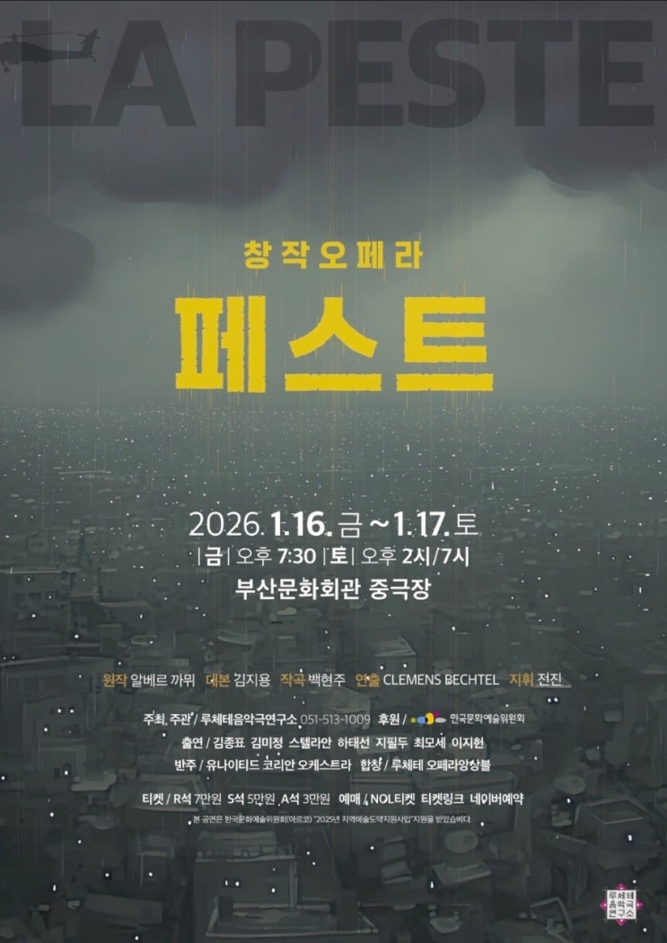 안녕하세요! 장유 관동동 팔판마을에서 성악/동요 수업을 하고 있는 에셀나무음악학원 입니다 에셀나무 음악학원의 어린이 성악 클래스, 음표나무 중창단 단원 최봄솔(창원용남초4) 친구가 오페라 '페스트' 어린이역에 최종 선발되어 오페라 무대에 오릅니다! 오페라 페스트 2026.01.16(금) - 01.17(토) 금 저녁 7:30 | 토 오후 2:00 / 저녁 7:00 부산문화회관 중극장 R석 7만 | S석 5만 | A석 3만 * 티켓 구매 : 인터파크, 티켓링크, 네이버예약 (티켓 할인은 사이트에서 확인하실 수 있습니다) 인터파크 놀티켓 오페라 페스트의 상세 설명은 아래 그림을 참고해주세요! 에셀나무 음악학원의 성악 클래스는 단순히 노래....... <img src="https://blogthumb.pstatic.net/MjAyNjAxMDlfMjcx/MDAxNzY3OTM4NzQ0NzQ1.WXiOrBbhTUC4SzA4O-720ndFlY4TBeYLcaTvCgxC6x0g.1Q2FvvSjimytVQ5hLamy3HXtKCRdAIn09HdnEvIBFRcg.JPEG/900%A3%DFScreenshot%A3%DF20260109%A3%DF121609%A3%DFKakaoTalk.jpg?type=s3" />