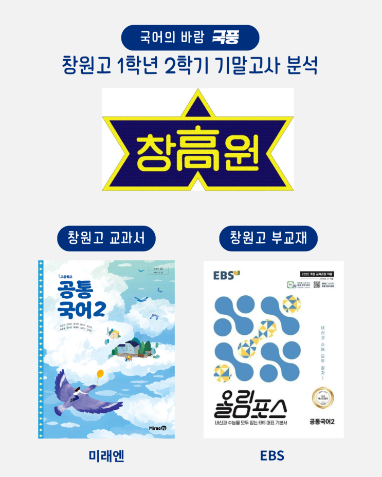 창원고 1학년 2학기 국어 내신 분석 창원고 국어 내신의 특징 창원 고등학교의 시험범위는 교과서를 비롯하여 부교재, 모의고사를 포함합니다. 시험은 객관식 60%, 서술형 40%로 구성되었으며 독서와 문법 파트에서 출제되었습니다. 독서는 교과서, 부교재, 모의고사 기출을 적절하게 활용하여 출제하였으며 문법은 현대 문법보다는 중세 문법 비중을 높여 변별력을 확보하였습니다. 창원고 국어 내신 대비 창원고는 타 학교에 비해 시험범위가 많아 평소 꾸준한 학습이 필요합니다. 철저한 개념 학습을 바탕으로 한 다양한 적용 학습만이 고득점 획득의 비결입니다. <img src="https://blogthumb.pstatic.net/MjAyNjAxMTdfMTI4/MDAxNzY4NjM1MzU1NDEz.lWUB8Nye0tWE6SyAZdDqBWpj0jX7UxDkN8HxZ733gqAg.rRNPzCErSU8wJBlRcULarfzMjMWn4n5I0nz5JBgKnBsg.PNG/4.png?type=s3" />