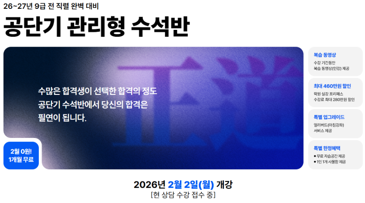 [공단기 경남·창원학원] 2026·2027년 대비 공무원 관리형 수석반 사전등록 이벤트까지!✨2026.2월 2일(월) 전과정 개강!
