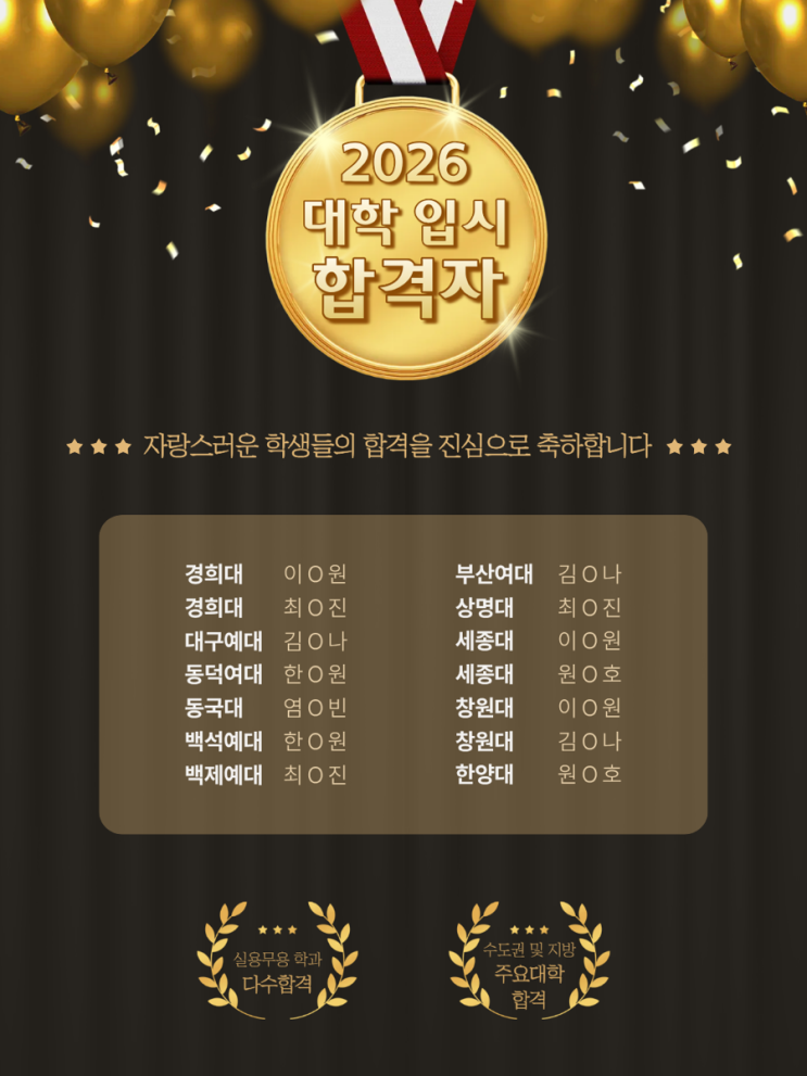2025년도 실용무용 대학 입시 결과 | 결과로 증명하는 비바댄스스튜디오