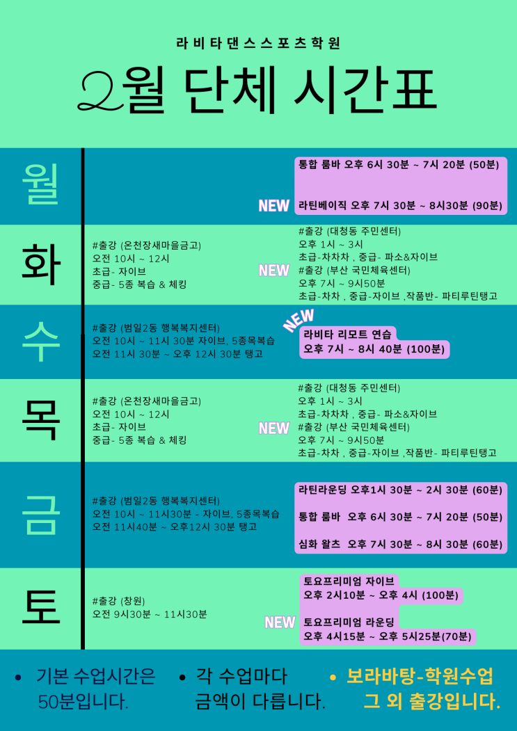 겨울의 한가운데, 춤으로 활력을 – 라비타댄스스포츠학원 2월 단체 수업 시간표