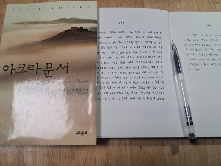 필사 No18 파올로 코엘료 '아크라 문서' 이집트 근처 아크라 라는 곳에서 발견된 천년전의 문서. 이 문서는 전세계에 너무 많은 사본이 발견되었다고 한다. 과연 어떤 지혜가 담겼을까... 필사를 하면서 각인해봐야겠다. <img src="https://blogthumb.pstatic.net/MjAyNjAyMDNfMjQw/MDAxNzcwMDc4ODY2OTc1.DH9dHkkwlPbULHH_3bMZ6KsIR984T3Bqm_52zU0kuaAg.pbSWGSAVDXUzVaeFh_fQ6rITqaZuUPeWmbRf8prKe7kg.JPEG/900%A3%DF20260203%A3%DF085709.jpg?type=s3" />