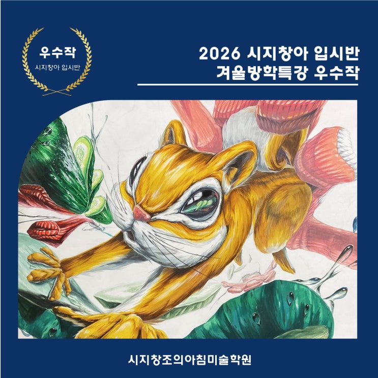 안녕하세요 시지창조의아침 미술학원입니다 오늘은 시지 창아에서 방학 동안 이루어 지고 있는 겨울 방학 특강 중 우수작을 소개드릴 예정이에요! 그럼 오늘의 포스팅 시작하겠습니다- <제시물 : 다람쥐, 오이, 목장갑> 이렇게 오늘은 입시반의 겨울 방학 특강 우수작을 둘러보았는데요, 기초 디자인에서 중요한 관찰력, 구성력, 표현력이 균형 있게 드러난 작품이네요!! 여러분의 노력에 결과로 보답하는 시지창조의아침 미술학원이 되겠습니다 ⬇️⬇️ [ 시지기초디자인/디자인미술학원/입시미술 ]에 관심이 있다면? ⬇️⬇️ 시지 경산 하양 진량 청도 전역 안전귀가차량운행 #수성구미술학원 #경산미술학원 #시지미술학원 #진....... <img src="https://blogthumb.pstatic.net/MjAyNjAxMzFfMjg0/MDAxNzY5ODIyNDk2ODAy.t3oI_Htw4dtIRNUHenuEWIa5TMO0W-0iBHr3q8uaIhYg.o-MC-xpXhyt4FBJfUvMF8YjH1LH_8AKXEPDYfWqtMGYg.JPEG/%28%B4%EB%C7%A5%29%B0%DC%BF%EF_%B9%E6%C7%D0_%C6%AF%B0%AD_%BF%EC%BC%F6%C0%DB-49.jpg?type=s3" />
