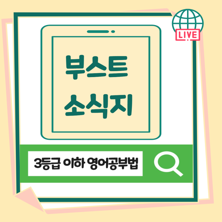 ◆3등급 이하 학생 여러분 지금은 독해를 더 풀 때가 아닙니다!◆ 독해량이 부족해서가 아니라 문장을 해석하는 기반이 부족해서 못 오릅니다. 즉, 단어 → 구문 → 독해 이 순서가 무너지면, 아무리 문제를 풀어도 실력이 쌓이지 않습니다. 오늘 부스트영어학원이 예비고1~고1 학생 기준으로 가장 현실적인 영어공부 순서를 정리해드립니다. 1. 단어가 먼저입니다 (많이 말고, 고정) 등급 이하 학생에게 단어는 “아는 것 같지만 시험에서 안 나오는 상태”가 많습니다. 그래서 목표는단어장을 끝내는 게 아니라 단어를 고정시키는 것입니다. 단어장 추천 (3~5등급): 워드마스터 고등 Basic 워드마스터 수능 2000 단어암기법: 무리하게 하루 100....... <img src="https://blogthumb.pstatic.net/MjAyNjAyMDFfMjM1/MDAxNzY5OTI0MTUwODgw.d_gVzNAebNzrzFoyBDiVVq29_QKD9x9uMa95-OGGglIg.j5ZhxfR0Gocv6crABsJr2nHvELow4qrPkqjPdJ3-4hsg.PNG/%EB%B6%3F%3F%8A%A4%3F%8A%B8%3F%86%8C%3F%8B%9D%EC%A7%3F_%3F%98%81%3F%96%B4%EA%B3%B5%EB%3F%EB%B2%3F.png?type=s3" />