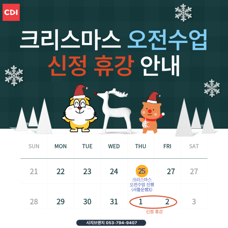 [시지청담어학원] 크리스마스·신정 운영 안내