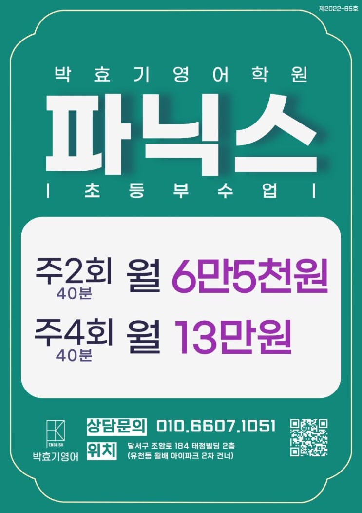 안녕하세요! 박효기영어학원입니다( ꜆˶›-‹˶)꜆ 저희 학원에서는 현재 초⋅중등부 신입생 모집중에 있습니다! 파닉스, 더빙, 독해, 문법 네 가지 수업을 들을 수 있는 저희 학원, 어떠신가요? 학부모분들의 많은 관심 부탁드립니다❤️ 실력있는 강사진, 꼼꼼한 관리, 학생 개인별 최적화 맞춤 영어학습으로 학생, 학부모 최대 만족을 목표로 늘 연구하고 변화하고 노력하는 학원, 최고는 아닐지 몰라도 학생 개개인의 최대 능력발휘를 위해 최선을 다하는 학원이 되겠습니다!! 자세한 수업시간 및 궁금하신 문의사항은 언제든지 상담전화 문의바랍니다 #박효기영어학원 #박효기영어학원2호관 #유천동영어학원 #월성동영어학원 #유천동유치부....... <img src="https://blogthumb.pstatic.net/MjAyNTEyMTlfMTI0/MDAxNzY2MTM4OTA4Njk5.Skn8MhW-Od0WnJDI0Wt_g1P98qCrrw6lbr8urqJDAScg.4BfroAlmY4ZkOysb0BsWjYejfDvurjkcdTPzTrUXy-cg.JPEG/1.jpg?type=s3" />