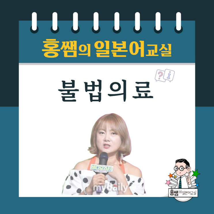 안녕하세요! 홍쌤입니다 요즘 연예계를 뒤흔들고 있는 '불법의료' 일본에도 이런 의미를 가진 여러 속어들이 있는데요~ 한번 알아보겠습니다! '闇医療' (やみいりょう) *'闇(やみ, 어둠)'이라는 단어는, 일본어에서 속어・관용적 표현으로 폭 넓게 쓰이고 있으며! 주로 법, 제도 밖에서 몰래이루어지는 의미로 사용되고 있음 闇バイト - 불법 알바 闇金やみきん - 불법 사금융 闇ルート - 불법 유통 경로 <img src="https://blogthumb.pstatic.net/MjAyNTEyMTlfMTkz/MDAxNzY2MTQ2ODEyNTIx.NJzmmVsSR8hO5Eg7E7YVIIQomYgvznSivG6d2ctIrRQg.jK4CrrcYZOt6O8iTXysCaGJM1I8bTBzLBzL4o0qallMg.PNG/%BA%D2%B9%FD1.png?type=s3" />
