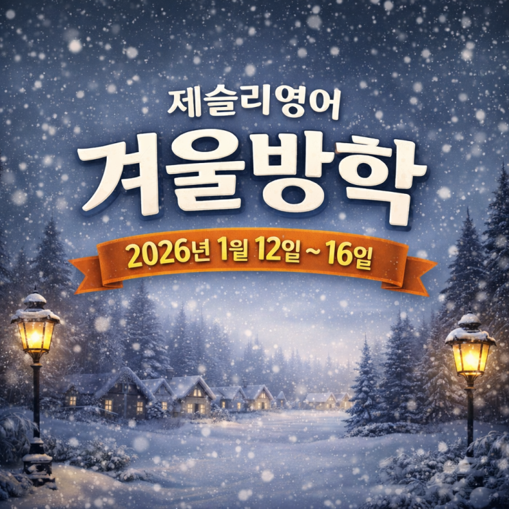 2026년 1월 12일 ~ 16일 1주일간 휴강합니다. 문의 사항은 카톡 메시지로 언제든지 주세요. 방학 후 1월 20일 화요일부터 겨울특강을 4주간 진행합니다. 감사합니다. ★ 학원/교습소 정식 명칭 : 제슬리영어학원 ★ 학원/교습소등록번호 : 인천동부교육청 제 3608호 ★ 교습과목(과정) : 내신+수능 ★ 교습비 : 중등35 고등40 ★ 교습과정(과목) : 영어 <img src="https://blogthumb.pstatic.net/MjAyNjAxMTBfMyAg/MDAxNzY4MDE3MTMwMTEy.rku8yWNDpBVZ4zI7o3S1LrNDmocj6wrsm3316lQMxMQg.4cINUxDblNhYhl6Fl4IyG0PNc1QPE580nRqHohL2c9Mg.PNG/%B0%DC%BF%EF%B9%E6%C7%D0.png?type=s3" />