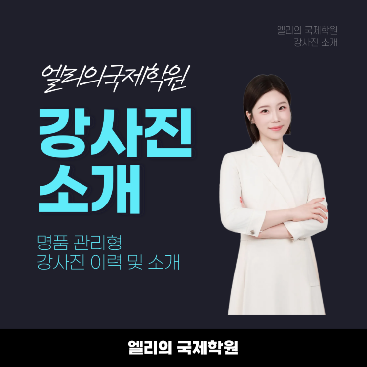 엘리의 국제학원 강사진 소개 결과로 증명하는 국제학교·AP 전문 강사진 국제학교 입시와 내신, AP 성적은 ‘어떤 강사에게 배우느냐’에 따라 결과가 크게 달라집니다. 엘리의 국제학원은 국제학교 커리큘럼과 평가 방식을 정확히 이해하고, 학생별 레벨과 목표에 맞춘 수업이 가능한 전문 강사진과 함께합니다. elly 원장 20년 경력의 국제학교·유학 전문가 미국 현지 및 IB 교육 과정 지도 경험 학생별 맞춤 설계와 꼼꼼한 관리가 장점 영어(English) 국제학교·외국인학교 커리큘럼 기반 수업 Reading / Writing / Grammar / Presentation 통합 지도 에세이 구조, 논리 전개, 첨삭 중심 수업 인터뷰·자기소개 대비 실전 트레이닝 단....... <img src="https://blogthumb.pstatic.net/MjAyNjAyMDFfMTE2/MDAxNzY5OTI3MTE1ODc3.vOvHmz_lHfnJRwsUnp41OLdlzxbVDWKliGZVQ9QlY5og.uUrnZXBVMi8b3-jtZlhRabLH_OL2izkK3BMpotxSpsUg.PNG/%C1%A6%B8%F1%C0%BB-%C0%D4%B7%C2%C7%D8%C1%D6%BC%BC%BF%E4_-001.png?type=s3" />