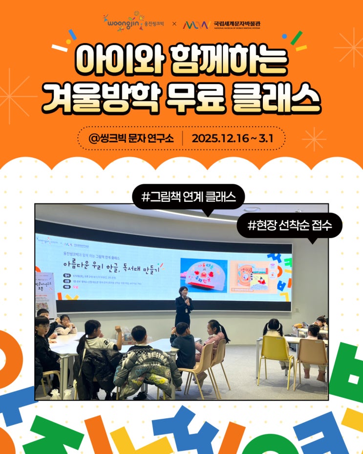 아이랑 겨울방학 뭐 할지 고민 중이라면, 여기 진짜 찐 추천이에요! 요즘 송도에서 핫한 씽크빅 문자 연구소에서 아이랑 함께하는 겨울방학 무료 클래스가 진행 중이거든요✨ ✔️ 입장 무료 ✔️ 체험 무료 ✔️ 그림책 연계 수업까지 이 조합… 솔직히 안 갈 이유가 없잖아요? 1월에 남은 프로그램, 이거예요! 아직 기회 있어요! (중요) ✅ 자음·모음 한글 문양 컵받침 만들기 → 1월 24일(토) ✅ ‘행복’ 문자도 족자 만들기 → 1월 31일(토) 아이들이 직접 만들고, 한글 의미도 자연스럽게 배우는 체험이라 집에 와서도 계속 이야기 나오는 클래스예요 그림책 연계 클래스 안내 아이들 집중력 + 이해력 쭉쭉 올라가는 구....... <img src="https://blogthumb.pstatic.net/MjAyNjAxMjVfMjMx/MDAxNzY5MzMwODI1MDg3.JIgPRQNQebgZJCxdZAAuvQQ9j8NcKKwdfRaKyHQGDoYg.hsPU-sK1PErm_DIh5gBbeCsw9-YBSuU9FAcwT-i_bh8g.JPEG/1.jpg?type=s3" />