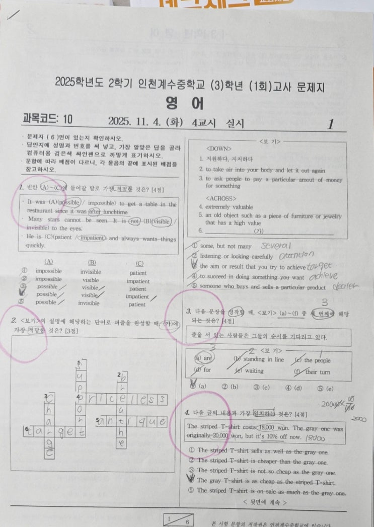시험범위 동아 윤정미 5 6 7과 이번시험 문법이 진짜 어려웠다고 100점컷 학생들도 80점대 많이 나왔다고 했지만 YP학생들은 -1개 정도에서 끝났답니다 ^^ 진짜 너무 수고했죠 ♡♡♡ <img src="https://blogthumb.pstatic.net/MjAyNTExMDlfMTU4/MDAxNzYyNjkwMjc3NTgw.VI7GozYXq70RUQgFBfDiIqg2wT_2-uNFAnPWbQDZ0Zkg.U4-ce0VZPqLlHi8J8hW15r6hejvGfBJmzAYpCrFdNKog.JPEG/900%A3%DF1762690208103.jpg?type=s3" />