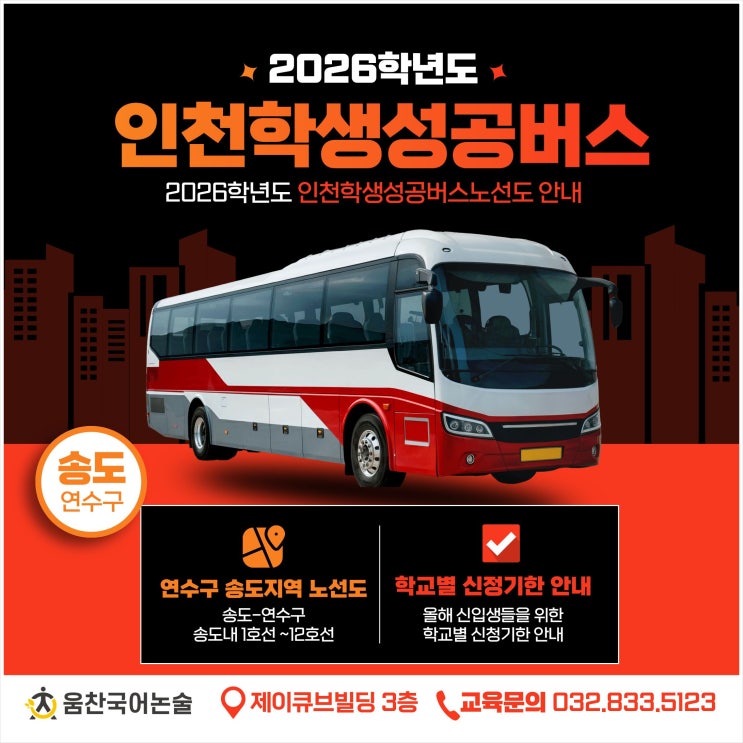 송도고등국어학원이 알려드리는 2026학년도 인천학생성공버스노선 및 신청방법