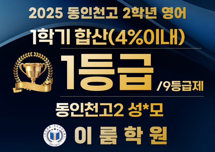 수업이 끝나고 한 학생들 먼저 성적표를 들고 옵니다. “선생님, 저 이번에 이렇게 나왔어요.” 말투는 담담한데, 얼굴은 기쁨을 숨기지 못하죠. 그럴 때마다 저희는 속으로 생각합니다. 아, 이 점수는 오늘 갑자기 만들어진 게 아니구나. 2025년 2학기! 이룸학원 영어 성적을 한 번 차분히 정리해봤습니다. 그리고 결론은 하나였습니다. 이번 학기 결과는 ‘누적의 힘’이라는 것입니다. 고등부 영어 스토리 먼저 고등부 이야기부터 해보겠습니다. 동인천고 2학년 한 학생이 1학기, 2학기 모두 1등급을 유지했습니다. 전교 기준으로 보면 상위 4% 이내입니다. 사실 성적보다 인상 깊었던 건 이 학생이 수업에서 보였던 태도였습니다. 문제를 맞....... <img src="https://blogthumb.pstatic.net/MjAyNTEyMjNfOTYg/MDAxNzY2NDcyNzY4OTEw.NXtwUrNtPDMjn8GHpinM9PLW2mtjz6rSE8HvLtq0gvUg.hEfvkTG_qBB4jQtshrnRfa78yPD6_dY61uEA-k_zdLIg.PNG/1.png?type=s3" />