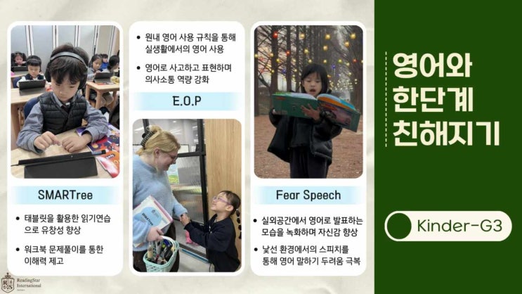 안녕하세요. 리딩스타 인터내셔널입니다 최근 빠르게 변화하는 시대 속에서 많은 학부모님들께서 이런 고민을 하고 계십니다. “이제 영어를 어떻게 공부해야 할까?” 단어를 많이 외우고, 문제를 많이 푸는 방식만으로는 더 이상 아이들의 미래를 준비하기 어렵다는 것을 많은 분들이 느끼고 계시기 때문입니다. 시대가 바뀌고 있습니다 AI와 기술이 발전하면서 지식 자체의 가치는 점점 낮아지고, ✔ 정보를 이해하는 힘 ✔ 비판적으로 사고하는 능력 ✔ 자신의 생각을 표현하는 능력 이 세 가지가 더욱 중요해지고 있습니다. 영어 역시 더 이상 ‘시험을 위한 과목’이 아니라, 생각을 확장하고, 세상과 연결되는 도구로 변화....... <img src="https://phinf.pstatic.net/image.nmv/blog_2026_03_20_448/0wxXTuE5ur_05.jpg?type=f480x480" />