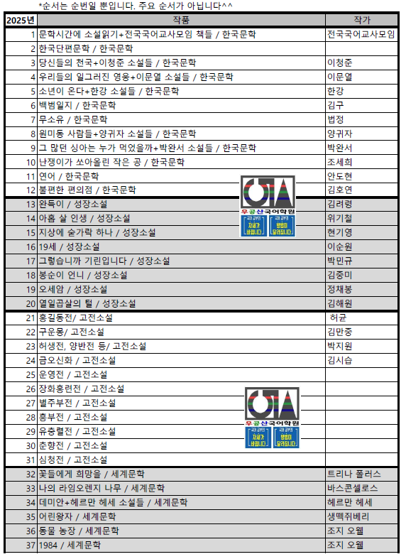우공산원장이 뽑은 청소년 필독도서+권장도서+추천도서(2026년01월수정)