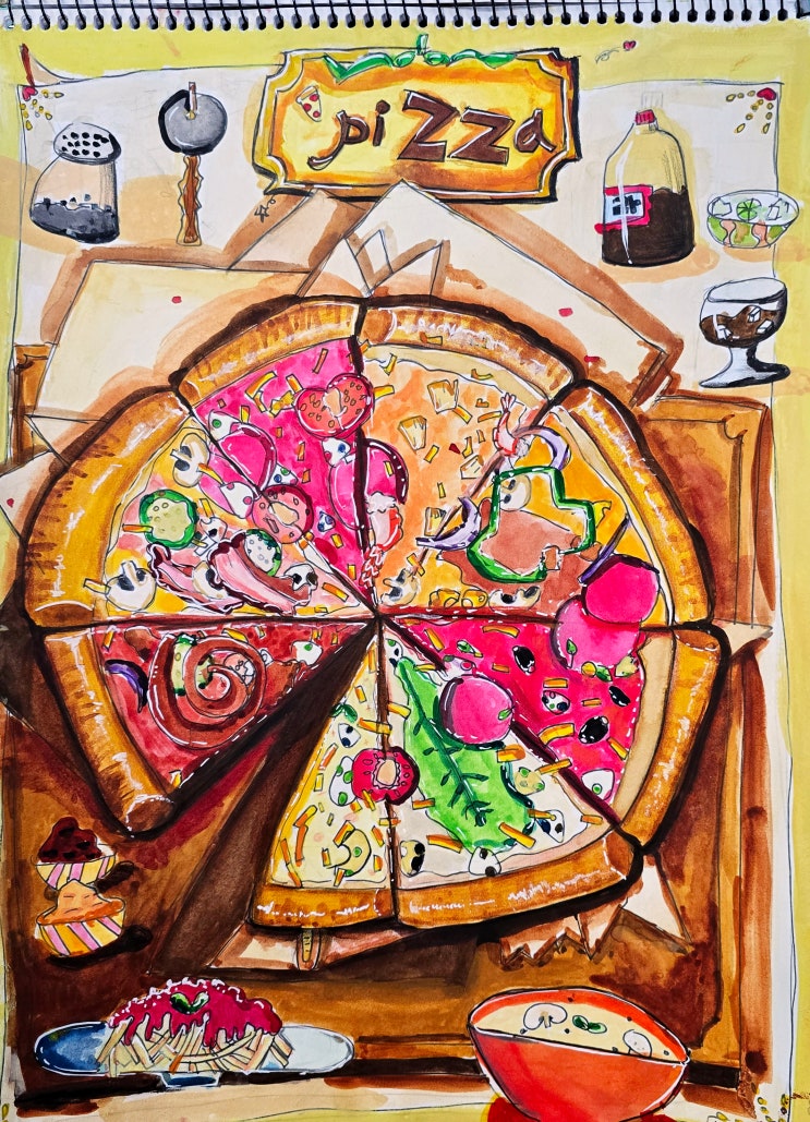 금호동 미술 코코의 [초등미술] 푸드일러스트 피자 한판 그리기!