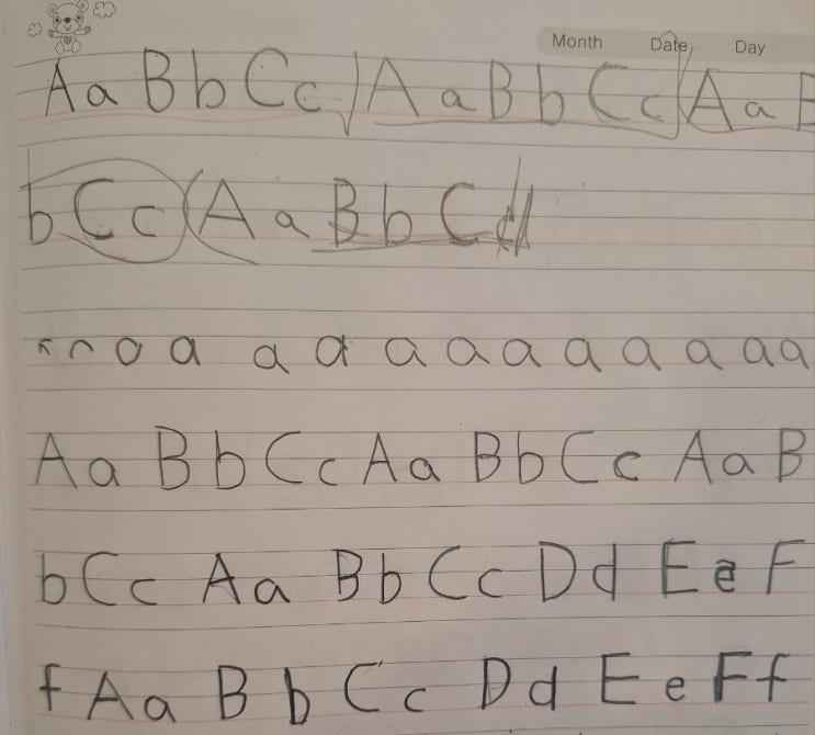 이제 앨퍼벳을 시작한 빛고을초3학년 예준이의 영어20일 보고서!
