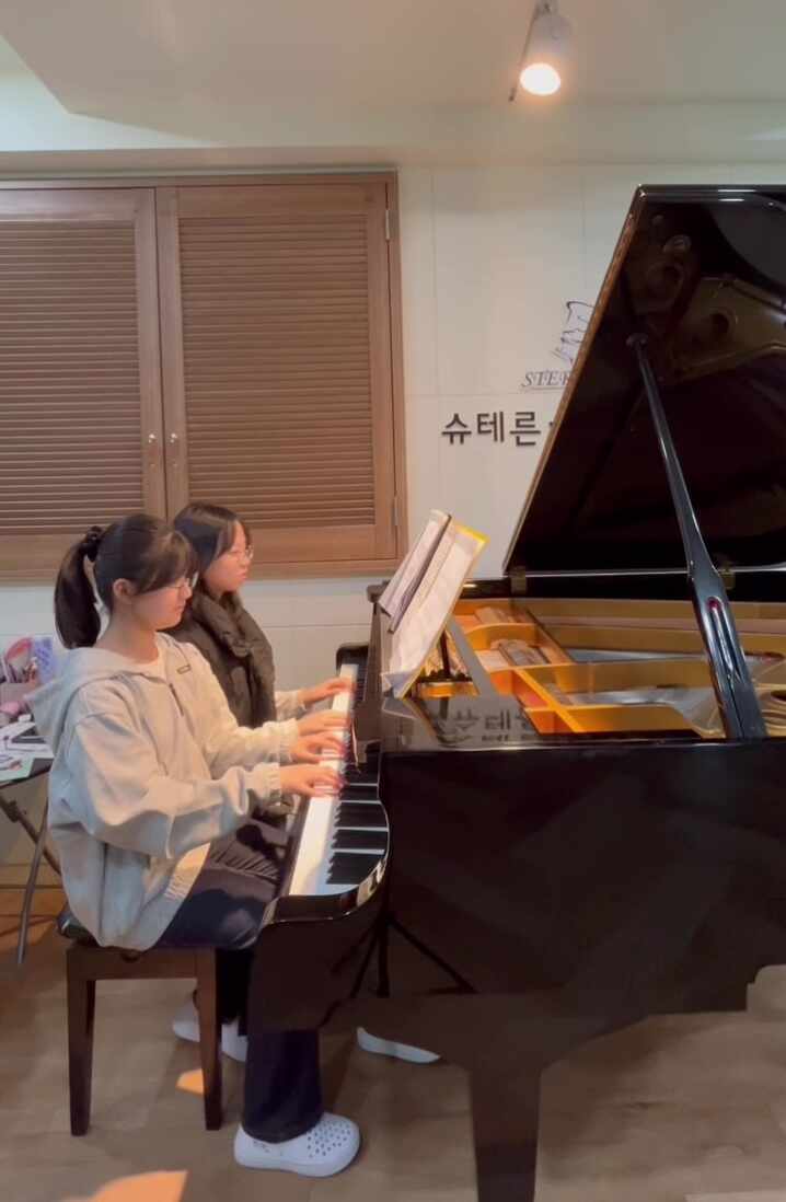 안녕하세요, 슈테른음악학원입니다 이번 금요특강 시간에는 아이들이 그동안 연습해온 곡을 작은 음악회 형태로 발표하는 시간을 가졌습니다. 그중에서도 오늘 소개해드릴 연주는 6학년 친구 두 명이 함께 준비한 듀엣 무대입니다. ⸻ 함께라서 더 아름다운 연주 Merry-Go-Round of Life (하울의 움직이는 성 OST) 이 곡은 많은 분들이 좋아하는 만큼 아이들에게도 익숙하면서도 감성적인 곡입니다. 하지만 듀엣 연주는 단순히 두 사람이 동시에 연주한다고 해서 완성되지 않습니다. ✔ 서로의 템포를 듣고 ✔ 호흡을 맞추고 ✔ 때로는 기다려주고 ✔ 서로를 배려하는 과정이 필요합니다 이번 연주를 준비하면서 두 친구는 “같이 맞춰....... <img src="https://phinf.pstatic.net/image.nmv/blog_2026_03_30_1954/CUZIVUBS1N_03.jpg?type=f480x480" />