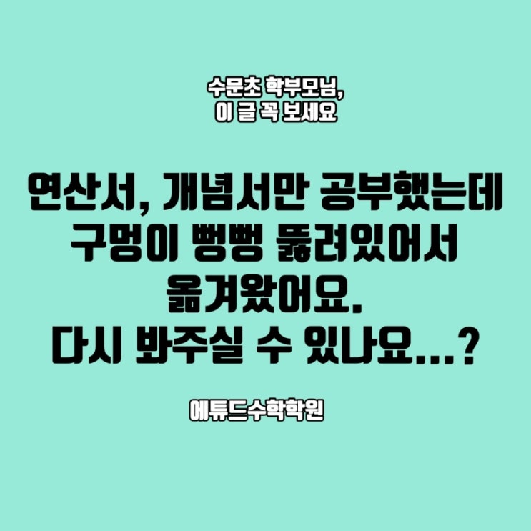 구멍이 너무 많아 옮겨왔어요.다시 봐 주실 수 있나요??_신창동수학학원