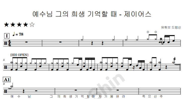 예수님 그의 희생 기억할 때 - 제이어스ㅣ 드럼 악보