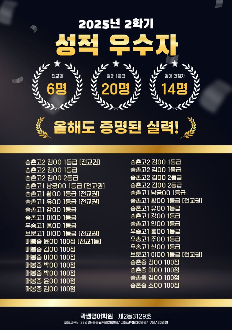 안녕하세요, 송촌동의 특별한 입시영어전문학원 곽쌤영어학원입니다. 시간이 참 빠르네요. 요즘 날씨가 정말 춥습니다. 추운 날씨에도 코를 빨갛게 하고 학원에 오는 아이들을 보면서, 이렇게 열심히 해주는 아이들에게 무엇을 더 해줄 수 있을까 늘 고민하게 됩니다. 어떻게 하면 아이들에게 더 좋은 영향을 줄 수 있을까, 어떻게 하면 더 올바른 방향으로 지도할 수 있을까 생각합니다. 또한 입시 준비로 지쳐가고 점점 말수가 적어지는 아이들에게, 그들의 마음이 어떤지 살피고 어떤 비전을 가지고 살아가야 하는지에 대해 따뜻한 말 한마디와 응원을 아끼지 않으려 노력합니다. 겨울방학, 영어 실력의 기초를 다지는 골든타임 겨울방학은 아....... <img src="https://blogthumb.pstatic.net/MjAyNjAxMDlfODMg/MDAxNzY3OTQ4MjczOTQ3.aWR29oblKo3z-nA1KW3XmorBAk-lnS8znDBHuG5HbZIg.VQzAnKuguKjHfPtMSUS7mPMVE7hv3kWgI6hrxDQuihYg.JPEG/25%B3%E22%C7%D0%B1%E2%BC%BA%C0%FB%BF%EC%BC%F6%C0%DA.jpg?type=s3" />