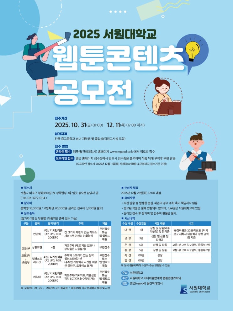 [대전케이툰만화학원] 2025서원대학교 웹툰콘텐츠 공모전 수상을 축하합니다
