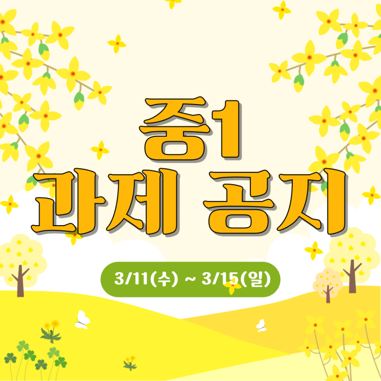 중1 3/11(수) ~ 3/15(일) 과제 공지