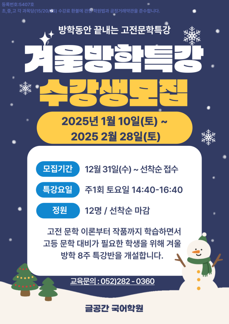 [공지] [글공간 국어논술] 울산 매곡 국어학원 글공간 - 겨울방학 [고전문학 특강] 안내