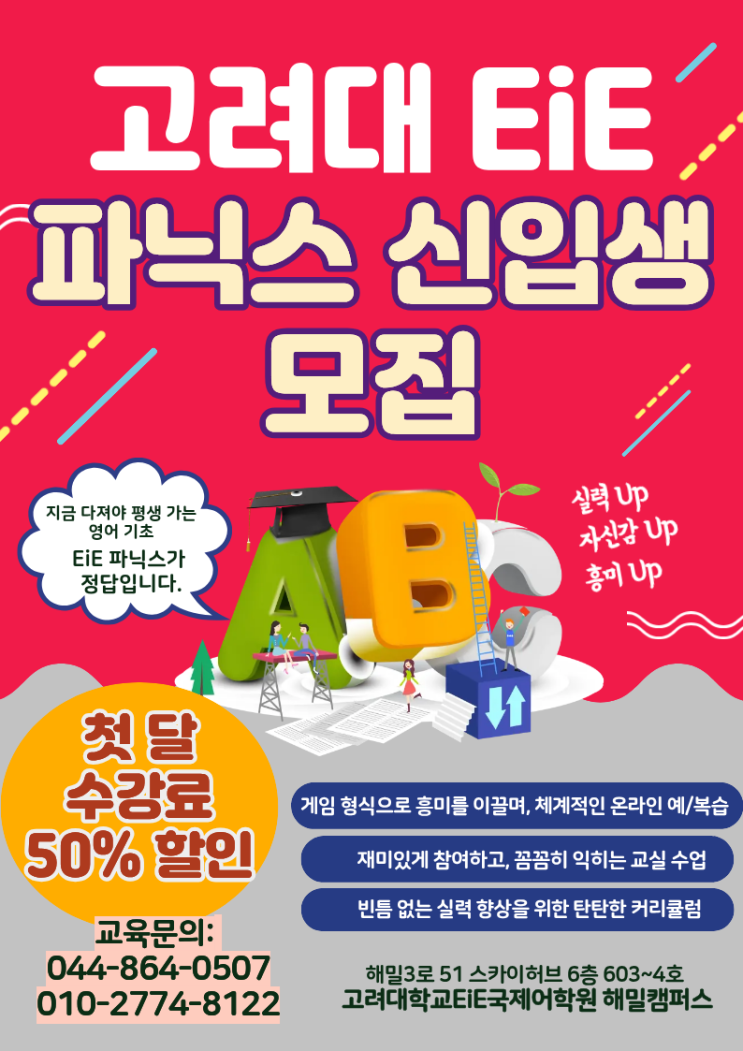 [세종 해밀/산울동 영어학원] 파닉스 신규생 모집 26년 3월 개강: 고려대EiE국제어학원