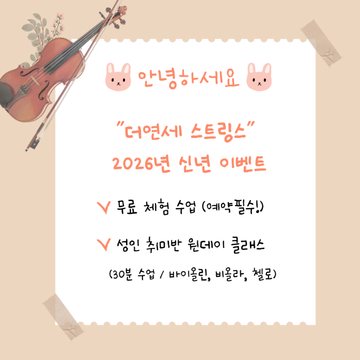 세종시 바이올린 첼로 소담동 음악학원 - 2026 신년 이벤트 무료체험 및 원데이 클래스 안내