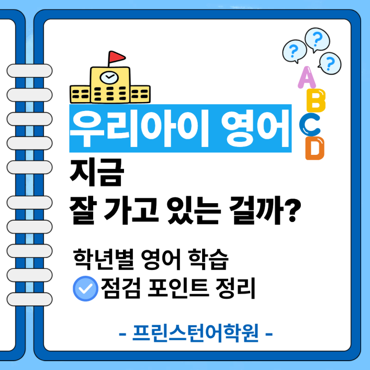 안녕하세요? 프린스턴어학원입니다. 학부모 상담을 하다 보면 가장 자주 듣는 질문이 있습니다. “우리 아이 영어, 지금 방향이 맞는 걸까요?” 열심히 학원도 다니고, 숙제도 하는 것 같은데 정작 실력이 쌓이고 있는지 판단하기는 쉽지 않습니다. 영어 학습은 단기간에 성과가 눈에 보이는 과목이 아니기 때문에 지금 아이가 잘 가고 있는지? 어디를 점검해야 하는지? 학년별로 기준을 알고 있는 것이 무엇보다 중요합니다! 그래서, 오늘은 각 초.중.고 영어학습에 있어서 가장 기본으로 판단할 수 있는 점검 포인트에 대해 안내 드리고자 합니다. ■ 초등 영어: “재미 + 기초 체력”이 만들어지고 있나요? 초등 시기의 영어는 성적보다 기초....... <img src="https://blogthumb.pstatic.net/MjAyNjAyMDRfNDkg/MDAxNzcwMTkwMDgyODU1.Kq8fS84cw-EU9ITRkATSUbi-oyt7VTWMPK0DLXPcxwQg.RnvwyIf-chLpNjxpZwqbY4GApNI6aREQUOux6_7BwUQg.PNG/1-%BF%EC%B8%AE%BE%C6%C0%CC%BF%B5%BE%EE.png?type=s3" />