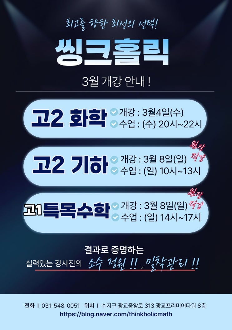 [씽크홀릭] 고2화학 / 고2기하 / 고1특목수학 3월 개강