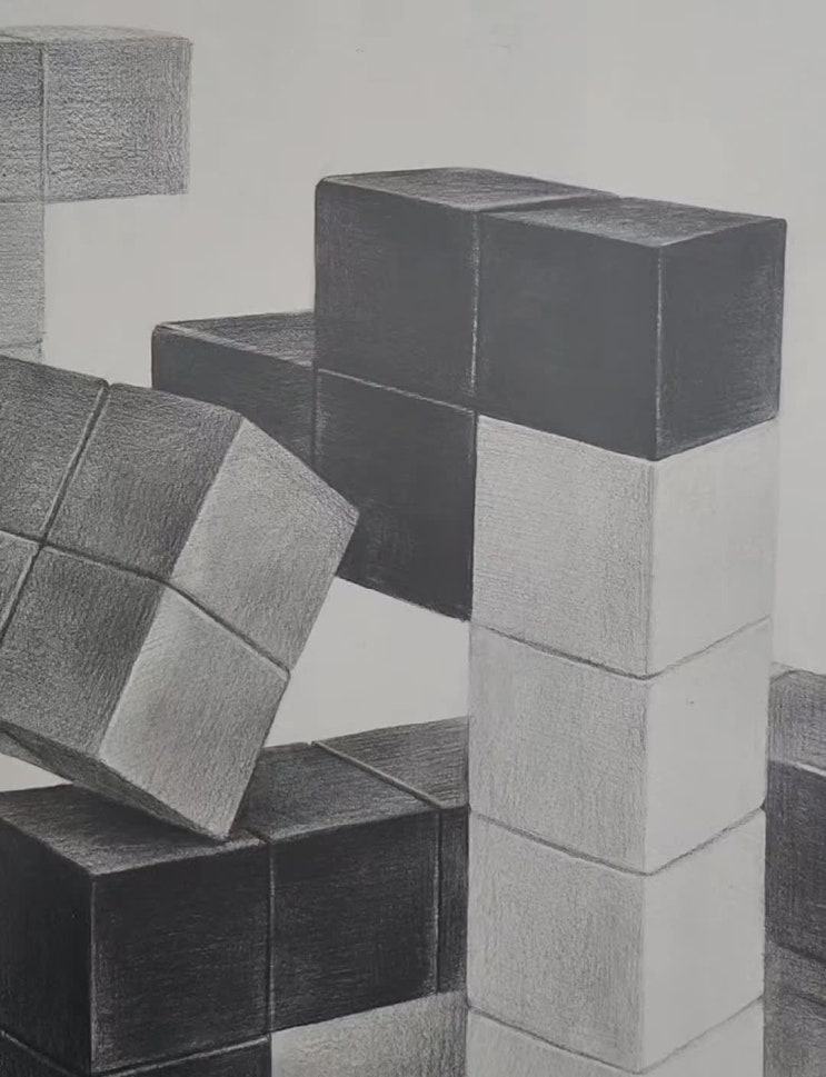 안녕하세요 이화미술입니다. 오늘은 2026 선화예고 소묘문제와 합격생의 재현작을 준비해보았습니다. 먼저 소묘 기출문제를 살펴볼까요?? 제시된 블럭(테트리스블럭)으로 1개 이상의 구조물을 만드시오. 제시물 : 색상과 모양이 다른 테트리슷 블럭 7개 원형 거울판 2개 (상상) 조건 : - 블럭을 쌓거나 끼우거나 기대어서 구조물을 만들 것 - 블럭의 종류를 모두 다 그릴 것 - 블럭의 고유색상과 비례는 그대록 그릴 것 (질감 변형 X) - 거울 원판의 반지름은 테트리스 조각의 4개의 크기로 그릴 것 (3절 / 4시간) 소묘의 기본기와 조건을 성실히 지키고 그리면 되는 문제 유형이었습니다. 블럭의 배치, 색상 차이, 형태력 등이 주로 요하는 부분....... <img src="https://phinf.pstatic.net/image.nmv/blog_2026_02_06_1521/ap8I981v1Y_01.jpg?type=f480x480" />
